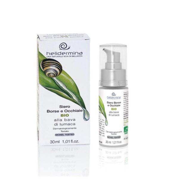 Nutriente, rassodante e dall’effetto anti-age, il siero Borse e Occhiaie Helidermina con il 70% di bava di lumaca, garantisce un effetto lifting e la conseguente riduzione delle antiestetiche borse sotto agli occhi e attenuazione delle occhiaie.