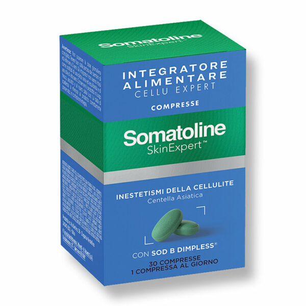 L’integratore SOMATOLINE Cellu Expert rappresenta un innovativo trattamento corpo che agisce in modo completo dall’interno, offrendo una soluzione a 360° per favorire benessere e salute. Trattamento intensivo che aiuta a contrastare gli inestetismi della cellulite, con ingredienti specifici e selezionati che agiscono sulla cellulite, favoriscono il metabolismo dei macronutrienti e contribuiscono alla formazione del collagene.