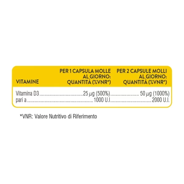 La vitamina D3 contribuisce al normale assorbimento del calcio e del fosforo e contribuisce a normali livelli di calcio nel sangue.